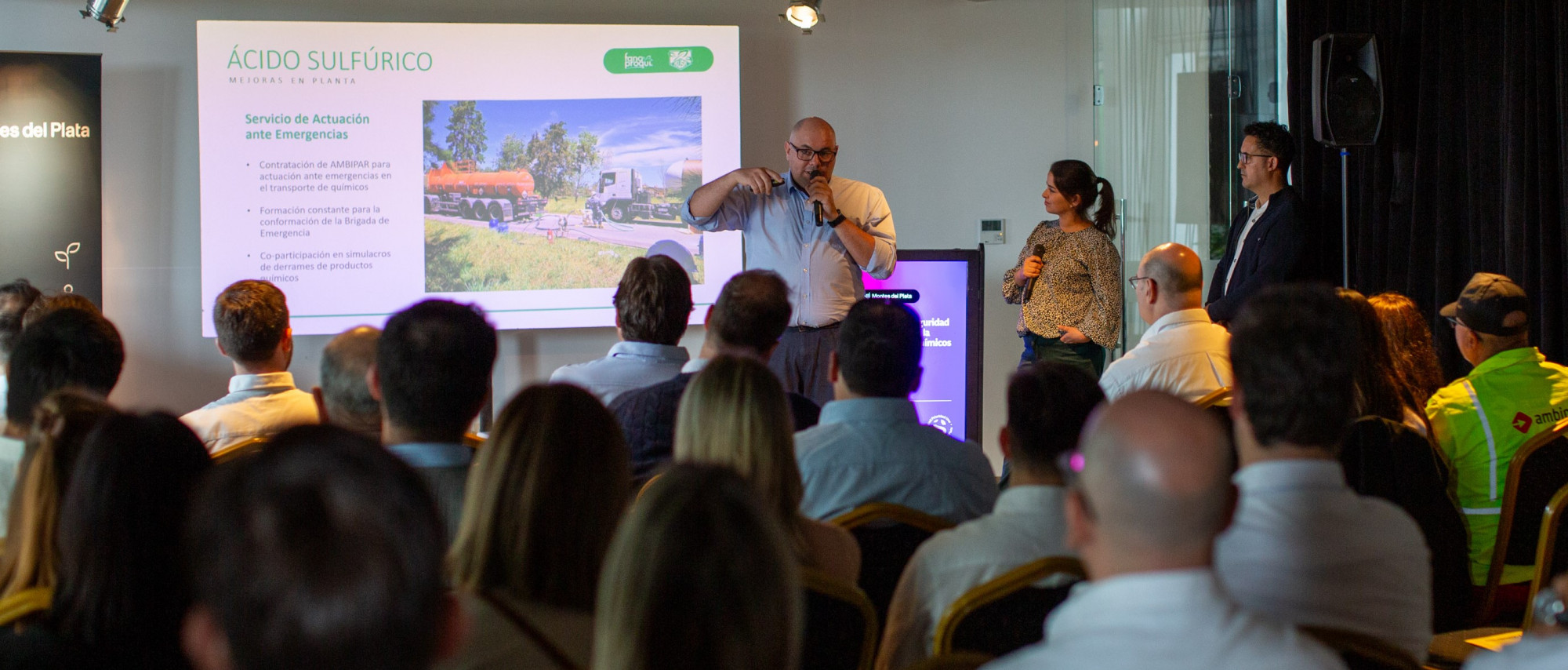 El 23 de abril participamos de la jornada de Seguridad y Cuidados en la Logística de Químicos, en el Departamento de Colonia, organizado por Montes del Plata. El encuentro permitió conocer y compartir experiencias de trabajo con otras organizaciones vinculadas al transporte de productos químicos en el país. El equipo de ISUSA-Fanaproqui presentó el trabajo que se realiza en la planta industrial de Agraciada (Soriano) y en la comunidad para disminuir los riesgos de accidentes en la producción, despacho y transporte de ácido sulfúrico que se entrega a Montes del Plata. Desde ISUSA-Fanproqui agradecemos a Montes del Plata por la invitación a participar del evento.