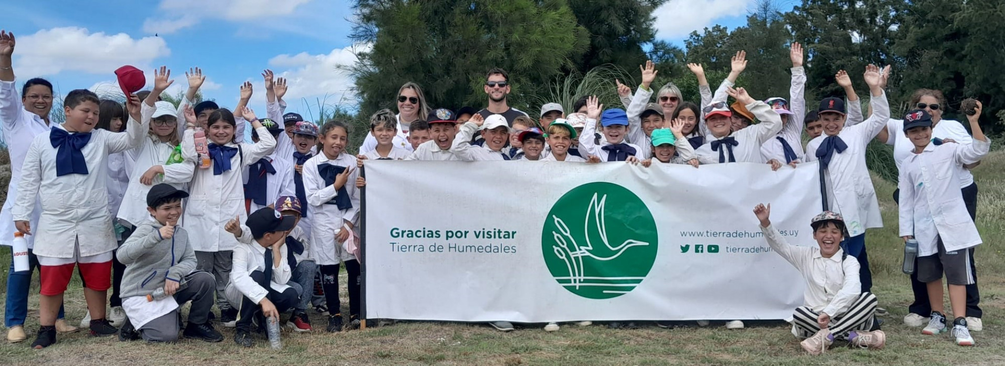 El 28 de noviembre, recibimos en Tierra de Humedales a los estudiantes y docentes de cuarto grado de la Escuela N° 117 del barrio Penino, de Ciudad del Plata. Durante la jornada los participantes observaron la flora y fauna del área protegida Humedales del Santa Lucía, así como los diferentes servicios ecosistémicos que ofrece el humedal para la vida. Como parte de la actividad, el centro educativo contribuyó con TH, plantando árboles nativos que mejoran el ecosistema.