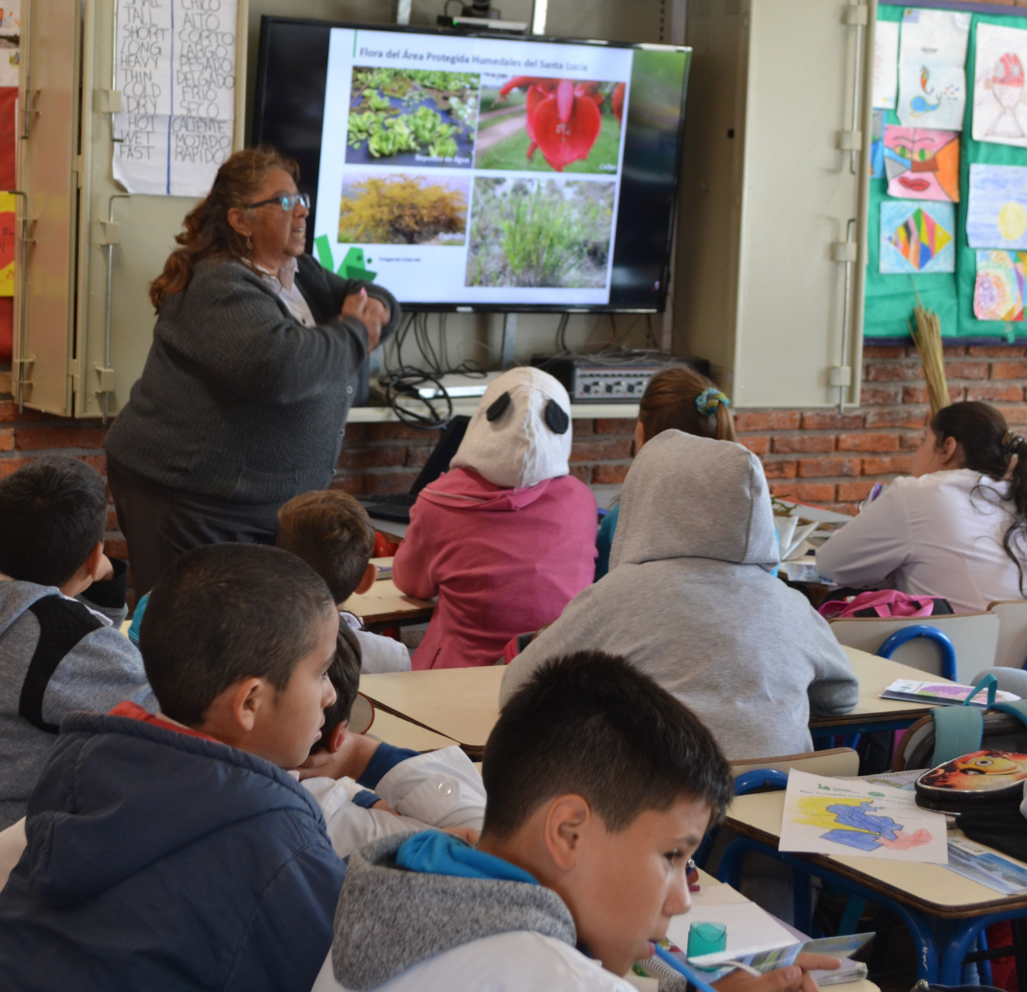 El 30 de agosto realizamos una nueva jornada de educación ambiental, en el marco del proyecto Jugando Aprendemos en Tierra de Humedales. En esta oportunidad compartimos un lindo encuentro con los estudiantes y docente de 4° A de la Escuela N° 66, Ciudad del Plata. Durante la actividad presentamos el área protegida Humedales del Santa Lucía, la importancia que tienen los humedales para la vida y las principales plantas y animales que podemos observar en el área protegida. Los estudiantes compartieron sus experiencias de visitar los humedales en la ciudad.