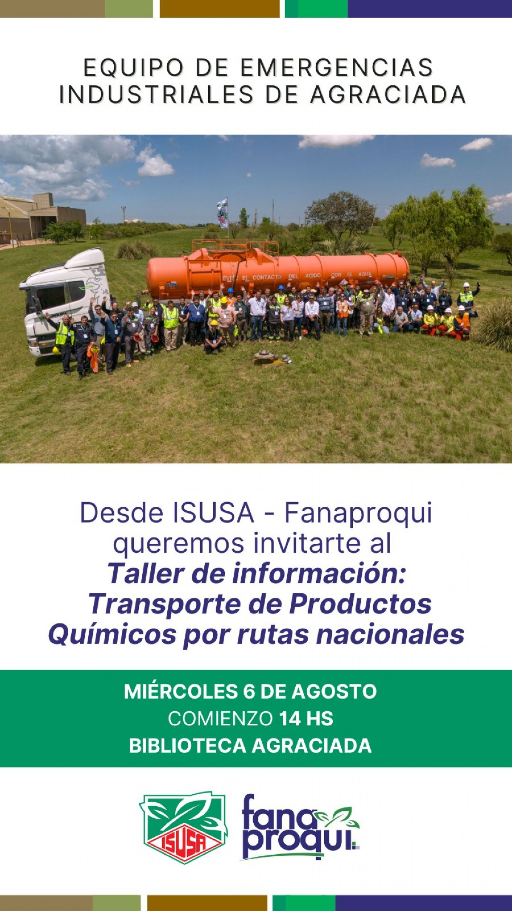 Mañana los esperamos a las 14:00 horas en la Biblioteca de Agraciada para compartir una jornada de encuentro e información sobre el transporte de productos químicos en las rutas nacionales.